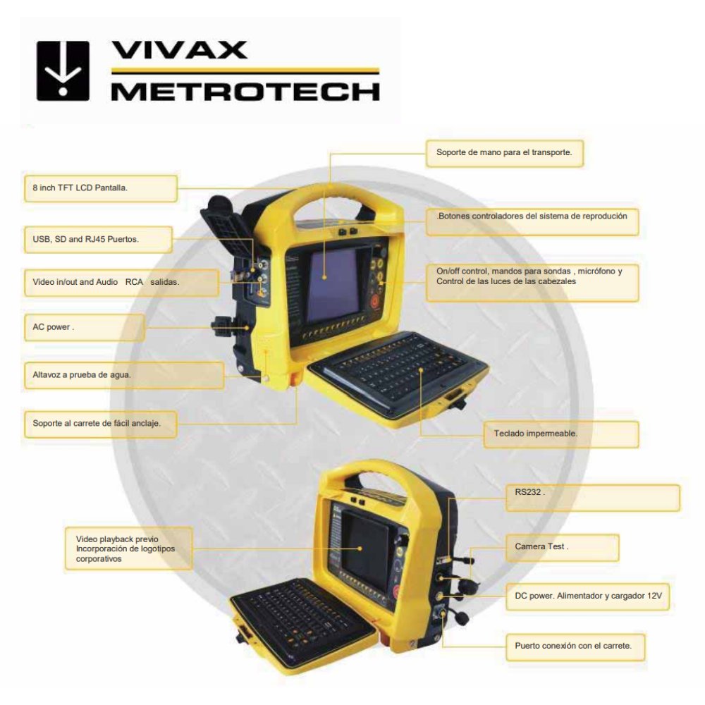 Carrete compatible con cámaras de video inspección de tuberías y/o alcantarillado.